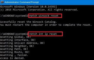 En el símbolo del sistema de DOS, ejecute los siguientes comandos para: restablecer WinSockque en realidad sería el software de administración de red de Windows, y presione Entrar después de cada línea: