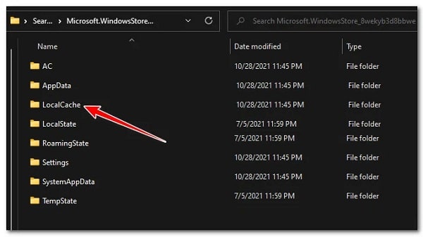 - Una vez que haya hecho eso, lo siguiente que debe hacer es encontrar la carpeta de caché local de Microsoft Store (Microsoft.WindowsStore_8wekyb3d8bbwe).