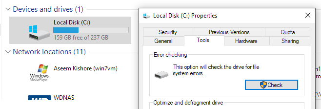 En mi caso, el problema estaba en mi disco duro. El disco tenía varios años y estaba muy particionado. En algún lugar del camino, comienzan a aparecer sectores defectuosos. Es una buena idea ejecutar chkdsk(Ejecute la utilidad chkdsk) en ventanas para verificar si hay algún error de disco que pueda estar causando la ralentización.