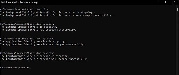 - Esto asegura que cada uno de los servicios de actualización de Windows se detendrá.