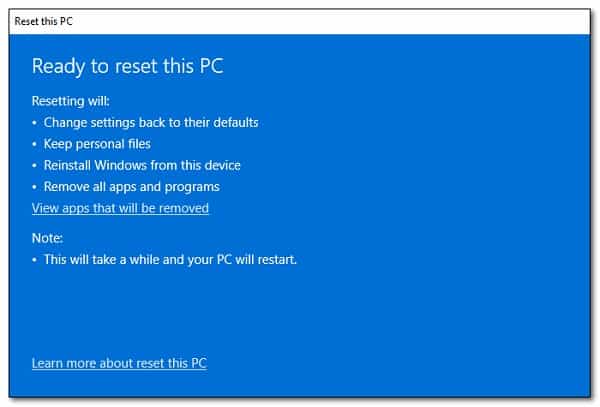 - Las pantallas subsiguientes deberían mostrar los detalles de reinicio. Revíselos y presione próximo.