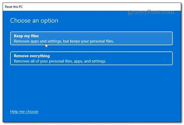 - ahora elige mantener mis archivos ambas cosas Elimina todo según sus preferencias para continuar.