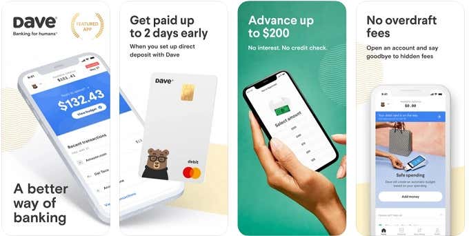 Prezentując się jako „bankowość dla ludzi Dave chce, żebyś myślał o nim jako o swoim finansowym przyjacielu. Wszyscy użytkownicy aplikacji otrzymują usługę zaliczki w wysokości 100 USD, a jeśli założysz bezpośrednią wpłatę za pomocą Dave ta usługa wzrasta do 200 USD.