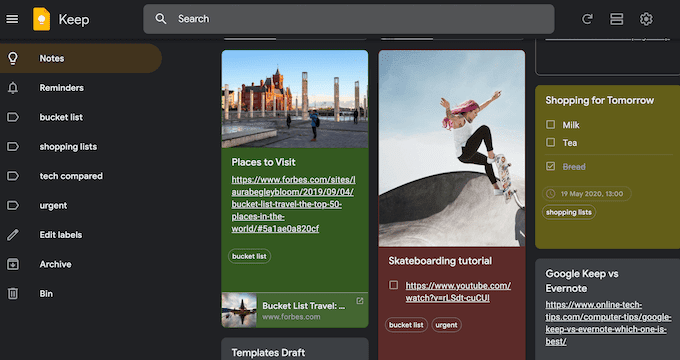 Google Keep oferuje bardziej złożoną strukturę. Format tablicy opublikuj to daje Ci swobodę organizowania go bardziej kreatywnie. trzymać to świetne rozwiązanie dla tych, którzy wolą dodawać więcej kolorów i obrazów do swoich list rzeczy do zrobienia. trzymać jest dla tych użytkowników, którzy chcą zrezygnować z formatu „listy” i używać etykiet, hashtagów i różnych kodów kolorów do organizowania swoich zadań(organizuj swoje zadania) . Google Keep umożliwia także dołączanie linków i plików multimedialnych do swoich zadań.